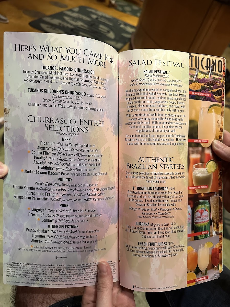 Some items are not available with the Monday thru Friday Lunch Special; Tucanos regularly features other Churrasco Selections; Selections subject to change without notice.